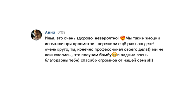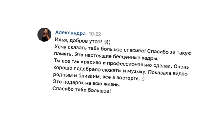 Создаём свадебные фильмы и клипы в Москве о самых трепетных моментах жизни. Что может быть более трогательным, чем воспоминания, которые можно пересматривать и каждый раз переживать их заново. Ознакомьтесь с некоторыми нашими работами, возможно, именно так вы представляете себе свою свадьбу.